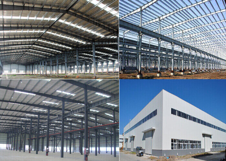 钢结构厂房主要由柱、梁组成的水平钢架组成。钢架是平面受力系统。设置屋顶和柱支撑,以确保纵向稳定性。
